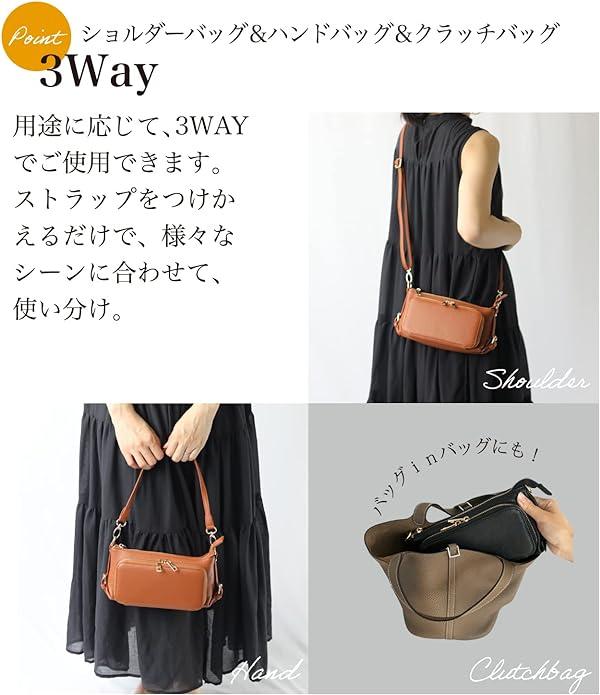 上質な牛革のみを使用したお財布機能ポーチ。ハンドバッグとショルダーとクラッチの3wayでシーンを問わず使えます!