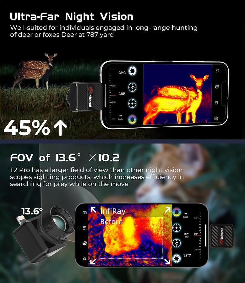 12μm 256X192解像度:|| 高解像度の屋外検出器であるInfiRay T2 Proは、セキュリティ、狩猟、およびその他の野外活動で使用するためのHD赤外線イメー