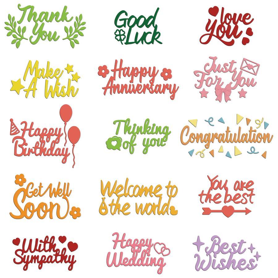 INFUNLY ワードダイカット カード作成用 祝福の言葉 金属切削ダイス おめでとうダイカット ハッピーバースデー エンボスステンシル テンプレート DIY スクラップブッキング装飾 結婚式 誕生日 イースターカード