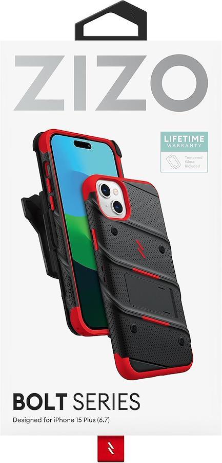 ブランド:Zizo (米国)、対応機種:AppleiPhone 15 PLus (6.7インチ) (2023年発売)、商品内容:ケース本体、液晶保護ガラス、ランヤード、各1pcs、、注意:本ケースは2層構造ですが、分解しないで下さい。