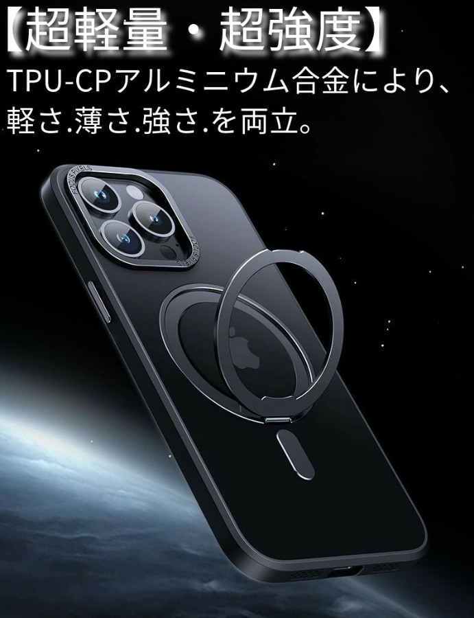 | 進化した リング付き・360度回転SPINリングスタンド | リングにもなる『新世代 360度回転SPINリングスタンド』がケースの溝に収納されます。 リングスタンドが360度回転し、シチュエーションに応じて絶妙な角度でスマートホンを固定できます。 収納時はフラットに収納できるので持ち運びの邪魔になりません。 |