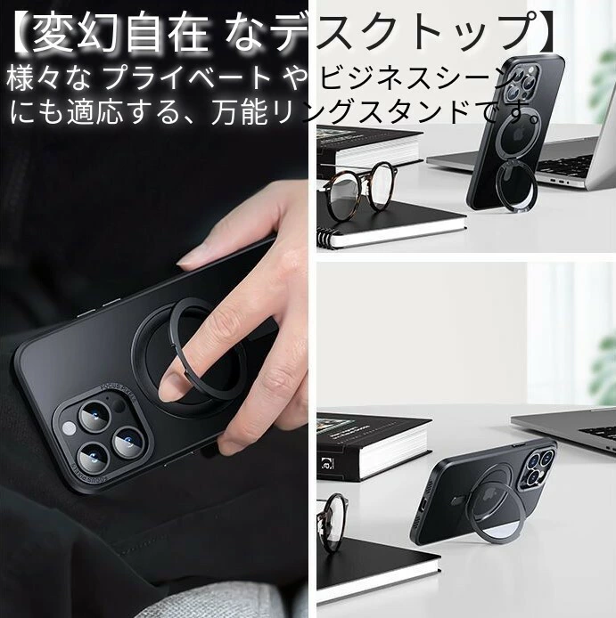 リングスタンドが360度回転し、シチュエーションに応じて絶妙な角度でスマートホンを固定できます。