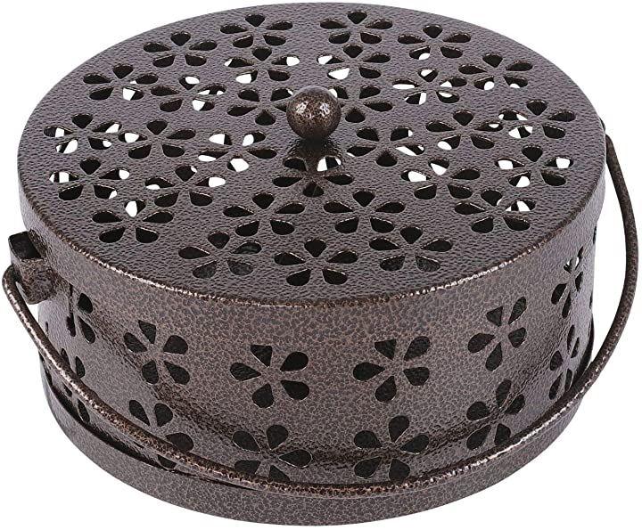 ・鉄製でどっしりした重さがあり、蓋と取っ手付きのオシャレな蚊取り線香ホルダー。