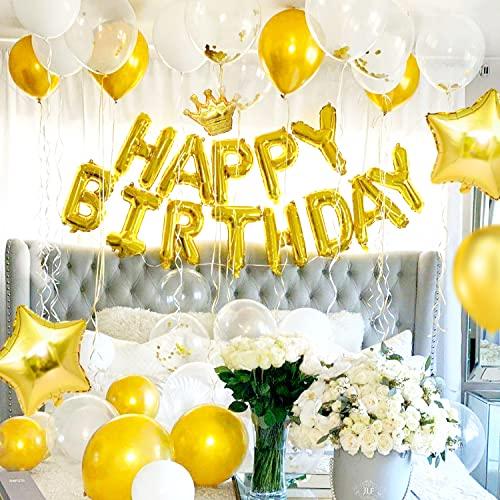 【特別な誕生日パーティ】光沢があるペーパー製、角度により光が反射し高級感があります。ゴールドのバルーンを飾って、鮮やかな色で人目を引きやすい!メタリックな紙吹雪がバルーンの中でキラキラとゆれて、華やかさをさりげなく演出します。ご家族、お友達と一緒に飾って、美しい写真を撮って、大切な人に忘れない誕生日を与えましょう。 【高品質素材】非毒性で環境にやさしい材料で作られ、お子様でも安心してお使い頂けます。星&ハート&王冠バルーンを用意しており、ゴールド調で豪華感がある飾りセットは男女兼用 【繰り返し利用可能】頑丈で割れにくい素材なので、破れにくく、一回使った後、空気を抜いてきちんと収納します。次のパーティーにも再利用可能です。ご注意:①風船を浮かせたい場合、ヘリウムガスをご利用ください。②空気ポンプ付属してありません。一度確認してからください。③粘着が強くなるため、風船一個にドットシール2点を貼って取り付けてください。 【簡単に飾り付け】多数のリボンとドットシールが付属しており、壁に貼っても掛けっても、飾り方は多いです。室内の壁や窓、または庭にらくらくに掛けることができます。両面テープは剥がしやすく、壁に傷めつけにくくて、とても便利です。 ※【メーカー保証】もし不具合か何か問題があれば、ぜひ「注文履歴」→「出品者に連絡する」から弊社と連絡してください。よろしくお願いいたします。