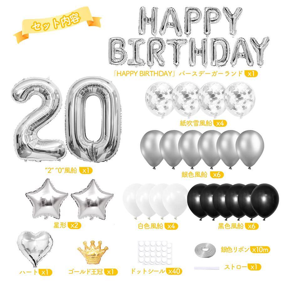 【流行の誕生日飾りセット】アルミバルーンはバリエーションが豊富-星形、ハート型はもちろん、「HAPPY BIRTHDAY」のアルファベット、数字型の風船も付き、流行の誕生日飾りが従来の作り方よりも簡単に作れるオリジナルキットです。 【豊富な飾りセット】①「HAPPY BIRTHDAY」アルミガーランド×1 ②ブラック風船×6 ③シルバー風船×6 ④ホワイト風船×4 ⑤紙吹雪風船×4 ⑥星形アルミバルーン×2 ⑦ハートアルミバルーン×1 ⑧ゴールド王冠x1 ⑨数字“19” ⑩リボン×10m ⑪ドットシール×40点 ⑫吸込管×1本 【高級感たっぷり】高品質のアルミバルーンを採用し、角度により光が反射し高級感があります。メタリックな紙吹雪が風船の中でキラキラとゆれて、華やかさをさりげなく演出します。美しい写真を撮って、大切な人に忘れない誕生日パーティーを与えましょう。 【いろいろな飾り方】誕生日バルーンを壁に貼り付ける方法やベッドに置いて飾る方法がおすすめです。付属のリボンで窓や庭にらくらくに掛けることもできます。初めての方でも楽しくデコレーションが作れます。両面テープは剥がしやすく、壁に傷めつけにくくて、とても便利です。 ※【商品保証】もし不具合か何か問題があれば、ぜひ「注文履歴」→「出品者に連絡する」から弊社と連絡してください。何卒よろしくお願いいたします。