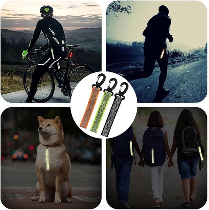 J-base Reflective Reflectors, Set of 2, for Night Walks and Strolls, with Strap, Keychain, and Carabiner, for Traffic Safety