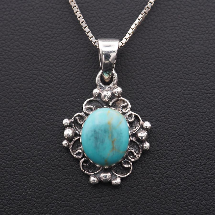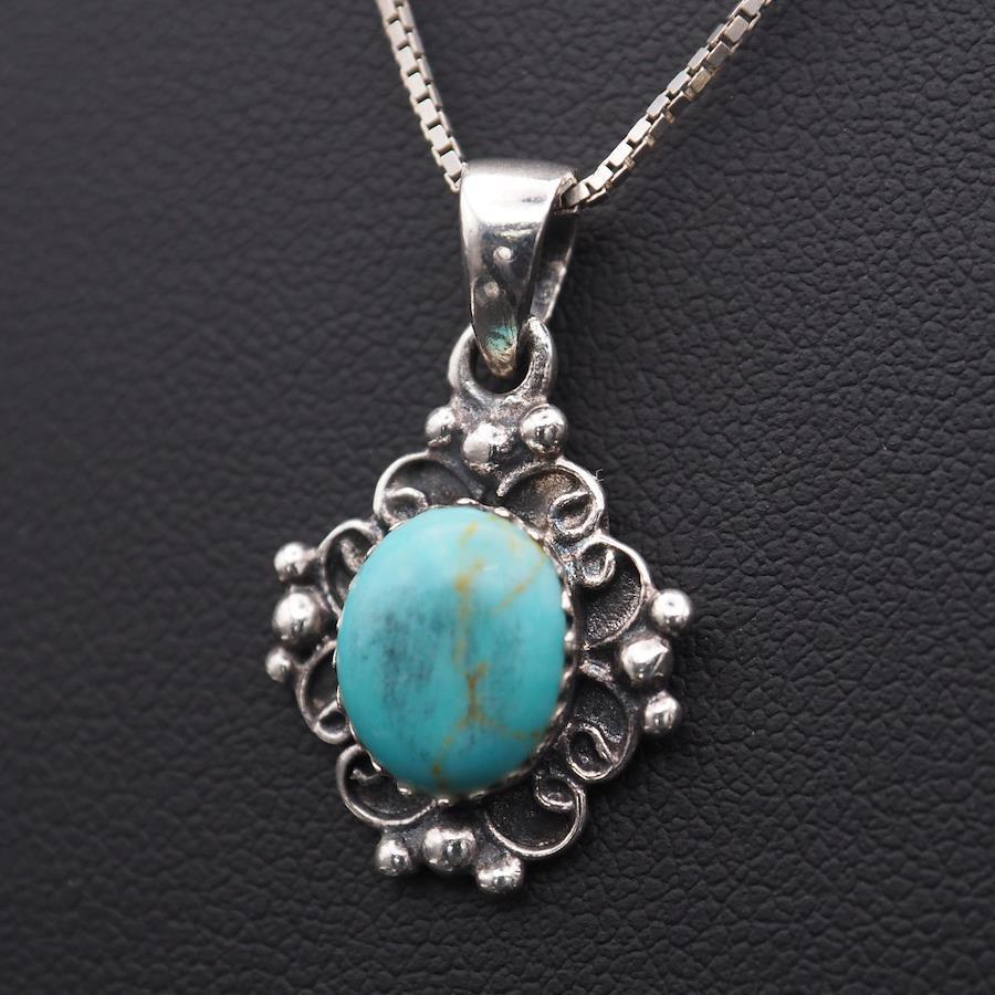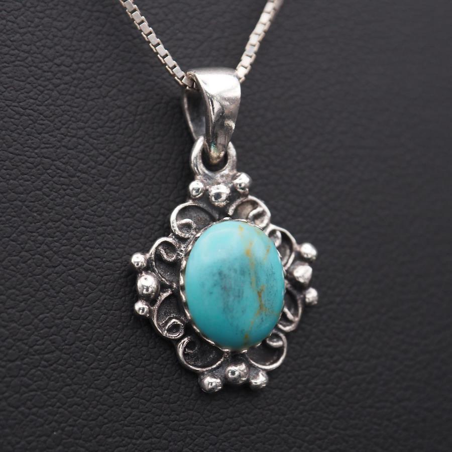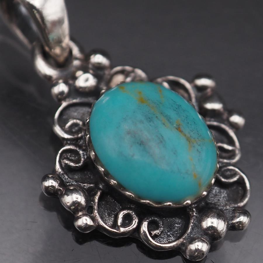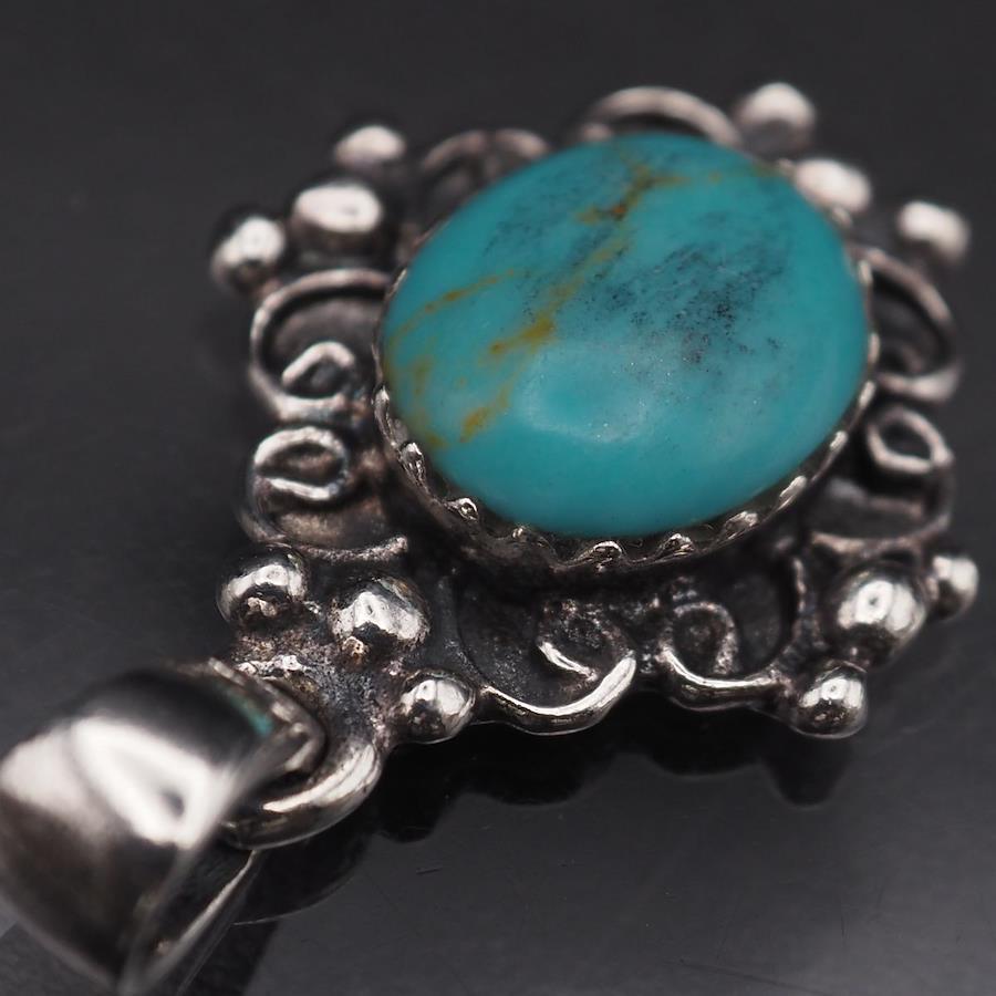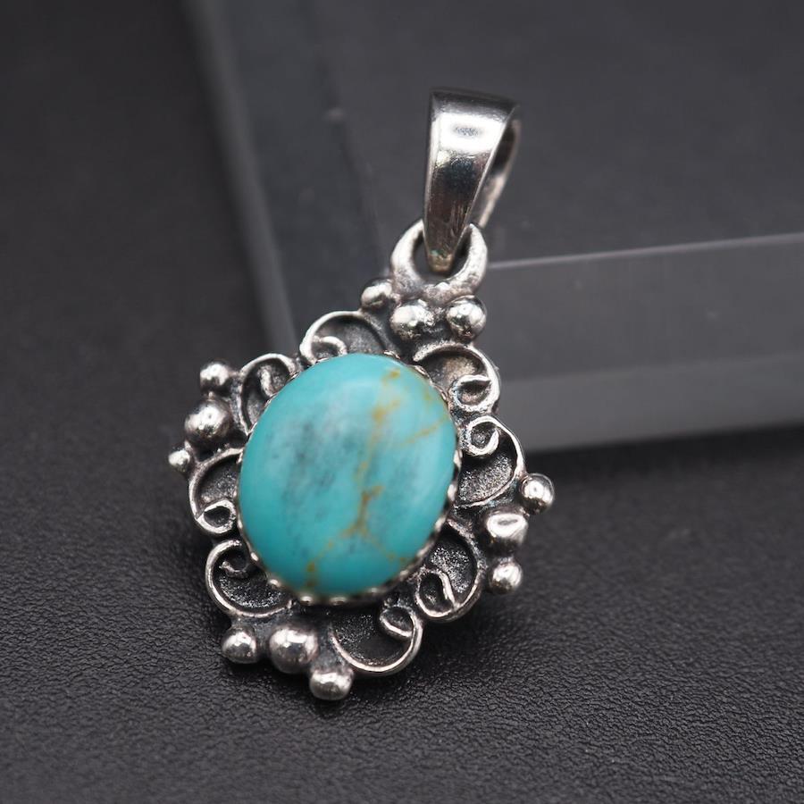 J214 Turquoise Pendant Top Design Silver Charm Head Vintage December Birthstone