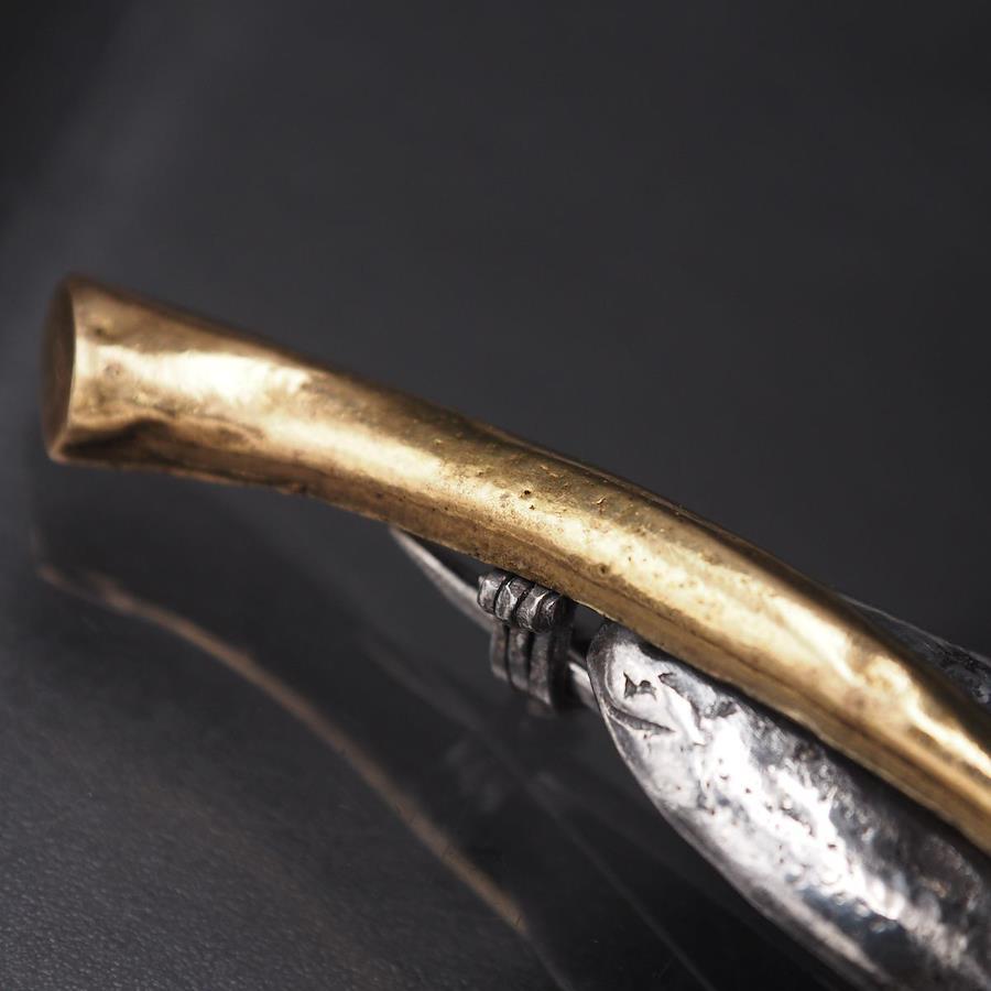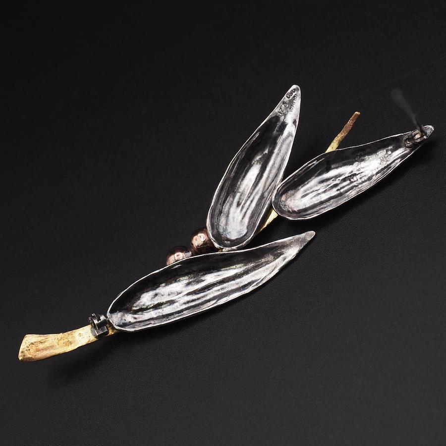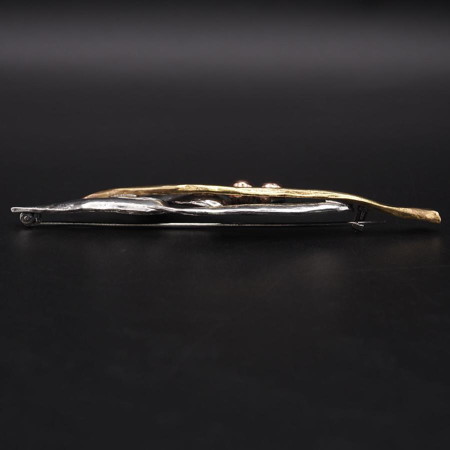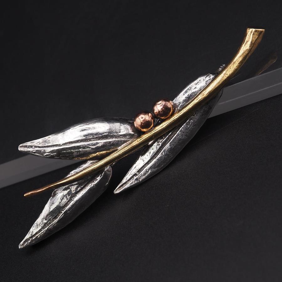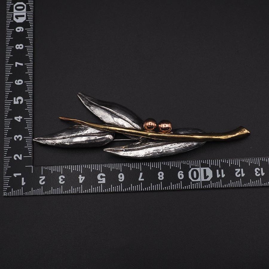 J371 Vintage Brooch, Large Leaf Design, Gold, Silver