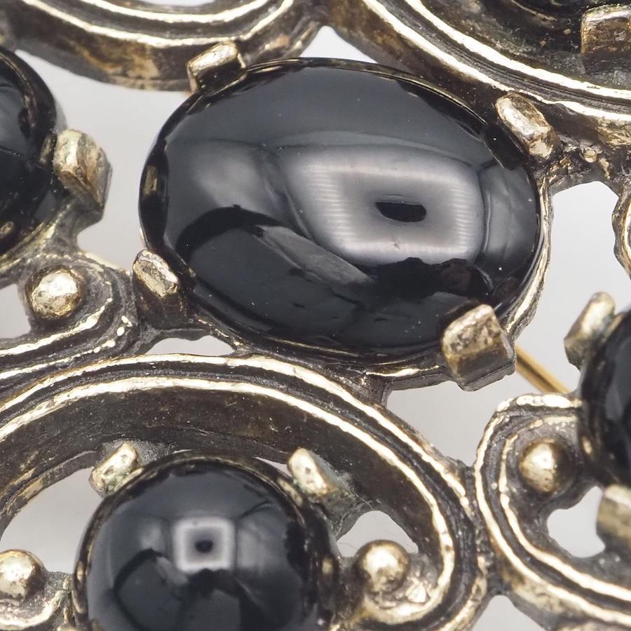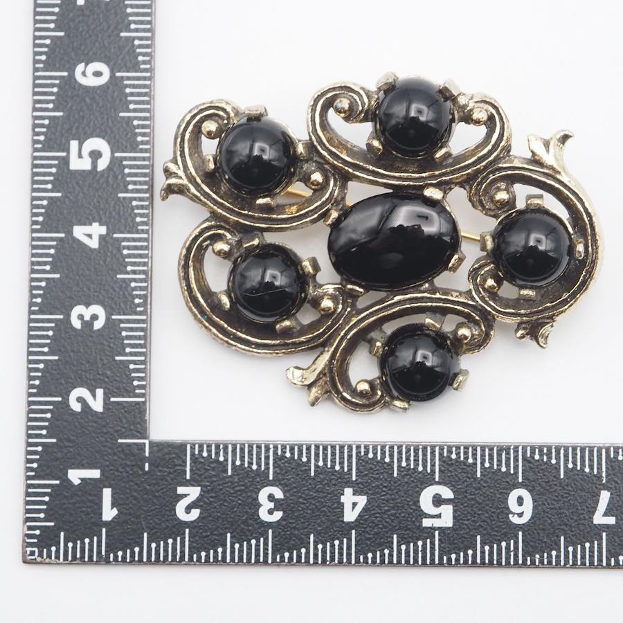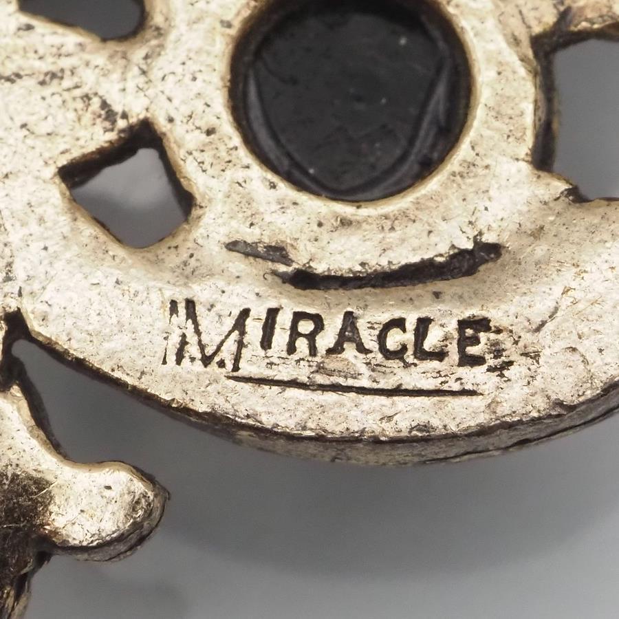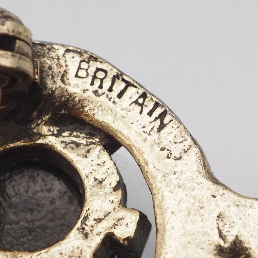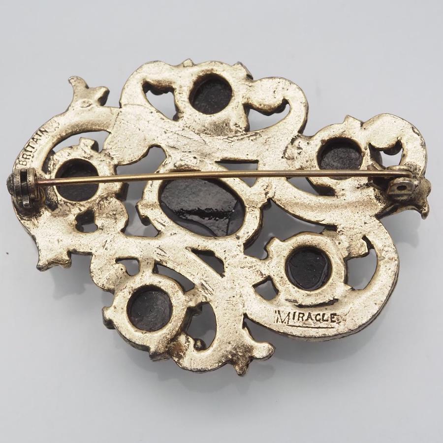 J585 British Vintage MIRACLE BRITAIN Stamped Brooch with Natural Stone Look and Gold Design, British Antique