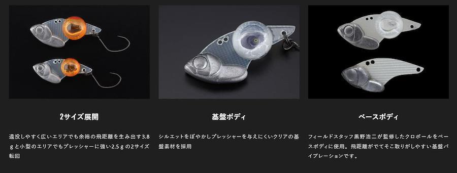 不思議なボールの引力。球体をまとったバイブレーションTIMONプロスタッフ瀧澤真一が誰でも簡単に釣れるボトムプラグを目指して開発したクロボールβ。トラウトが好反応を示す球体形状に底取りを容易にするバイブレーションをミックスし、誰でも扱いやすく、簡単に釣れるボトムバイブレーションが誕生しました。よく飛び、よく釣れる抜群の飛距離を生み、素早く着底するクロボールβは使い手を選ばずどの釣り場でも活躍します。基本的な使い方はボトムをキープしながらゆっくりと巻くだけ。ボトムの凹凸で球体が揺れながらトラウトにアピールします。遊び心あふれるカラー発色がよく、アピールが強いグロー(蓄光)やトラウトのエサであるペレットを模したカラー、イクラなど、遊び心あふれるカラーラインナップでトラウトも、アングラーも飽きさせません