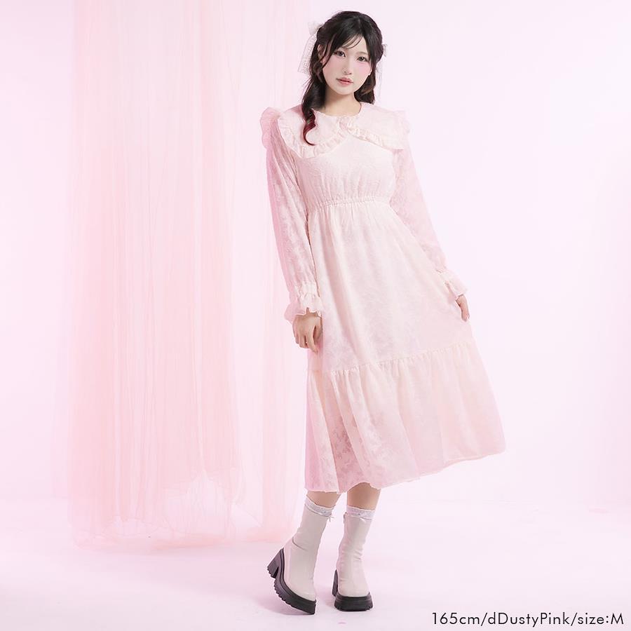 大きめなフリル襟が愛らしいジャガードワンピース。
