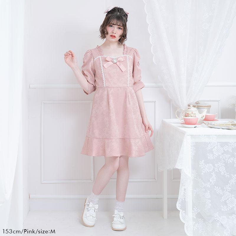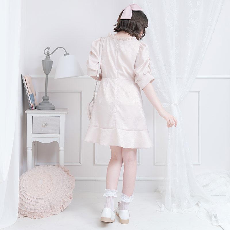 アフタヌーンティーにもぴったりなお嬢様ジャガードワンピース【デザイン】お花柄のお上品なジャガード生地にパワショル袖がポイント中心にはキラキラ輝くビジューがついています。シルエットも綺麗でレースも映えるようになっています。後ろファスナーで着脱可能になっています。厚すぎず薄すぎない着用しやすいジャガード生地です。またカラーも沢山あるのでお気に入りの1枚になったら嬉しいです。【素材】これからの季節に着用しやすい厚さのジャガード生地を使用しています。ワンピースは裏地つきとなっております。【コーディネート】大きめリボンバレッタやツインリボンクリップなどお上品なコーデになれるワンピースです。ローファーやパンプスを合わせてお友達との優雅なアフタヌーンティーを楽しんで♪《透け感》なし 《生地の厚さ》普通 《裏地》あり 《伸縮性》なし《生産国》中国