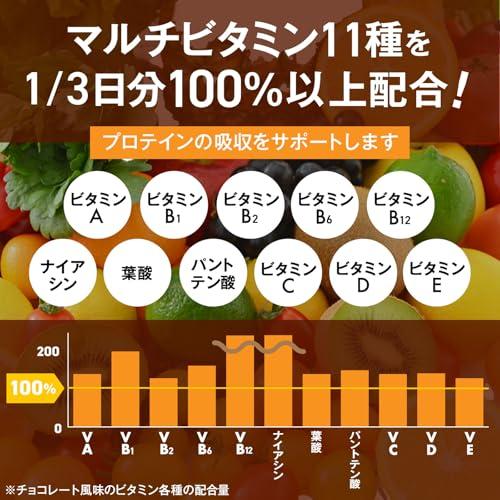 【おいしいの王様】衝撃の絶品プロテイン!ホエイプロテイン100%使用で、1杯あたり21g以上たんぱく質配合。さらに1/3日分のビタミン11種も配合。 【おいしい・溶けやすい・続けやすい価格】こだわり①美味しさ:飲みやすさ・美味しさにこだわり、水で美味しく飲める味わいを実現しました。こだわり②溶けやすさ:独自の処方で溶けやすさを追求。泡立ちやダマ感、こなっぽさを低減しました。こだわり③続けやすい価格:毎日飲むものだからこそ、栄養価と続けやすい価格にこだわりました。 【チョコレート風味】濃厚なカカオの香りが際立つまろやかでコクのある王道フレーバー。あっさりとした甘さで飲み続けても飽きのこない味に仕上げました。 【お召し上がり方】約30g(付属のスプーン小山盛り2杯)を目安に200mlの水などに溶かしてお召し上がりください。※シェイカーを使用すると溶けやすく手軽に摂取できます。 【おすすめの摂取タイミング】1日2?3回を目安に、運動前後や間食時、睡眠前に摂取いただくことをおすすめします。