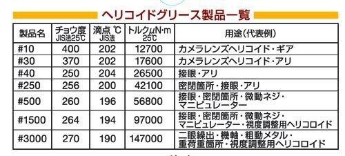 光学用ヘリコイドグリース(ヘリカルグリース)です。#が高いほど粘度が強くなります。