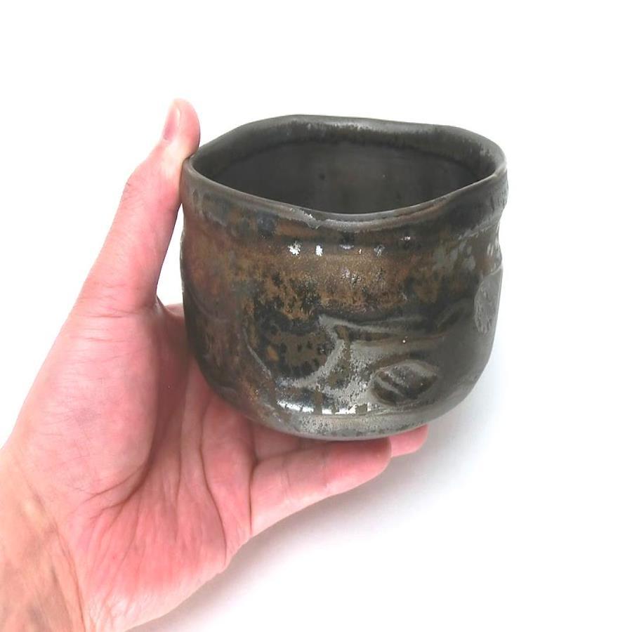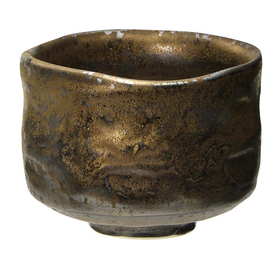 Gold Glazed Matcha Bowl (Chawan): A beautiful, handcrafted-style bowl with a rich, metallic gold and deep brown glaze.