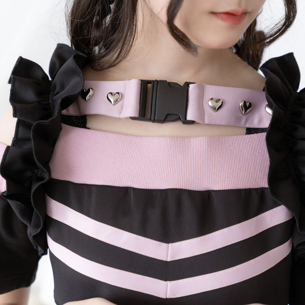 胸元や垂れベルトのスタッズがハートなのもポイントです。
