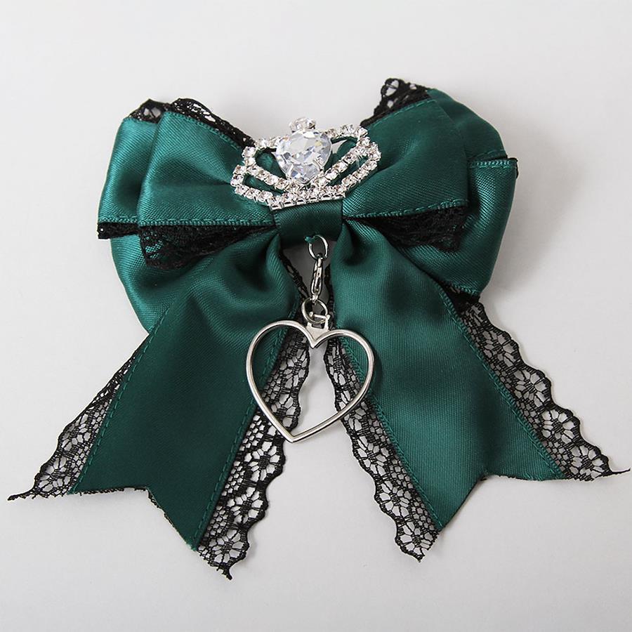 中心には大きめ王冠ビジューとサテンリボンにレースがポイントのヘアクリップ。