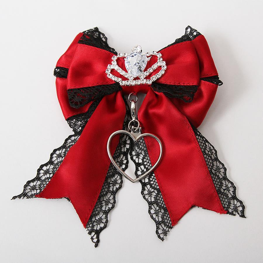 中心には大きめ王冠ビジューとサテンリボンにレースがポイントのヘアクリップ。