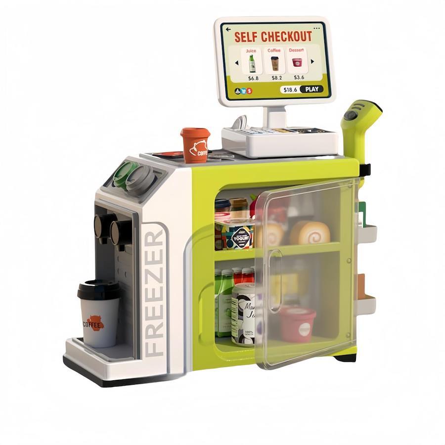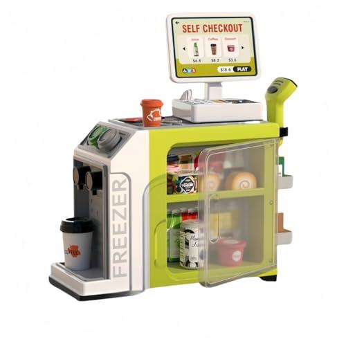 JiFocelt Authentic Supermarket Play Set | Includes an Electronic Cash Register Scanner & Calculator, Credit Cards, and a Coffee Machine for Fun Shopping Experiences for Kids