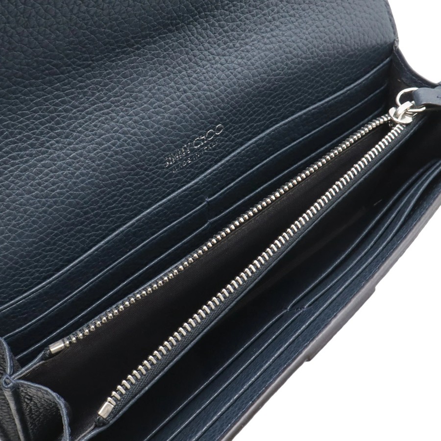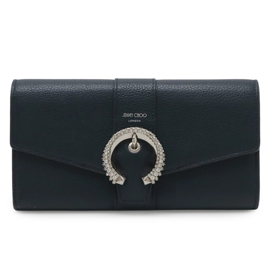 クリスタルバックルが目を引くラグジュアリーなロングウォレット。