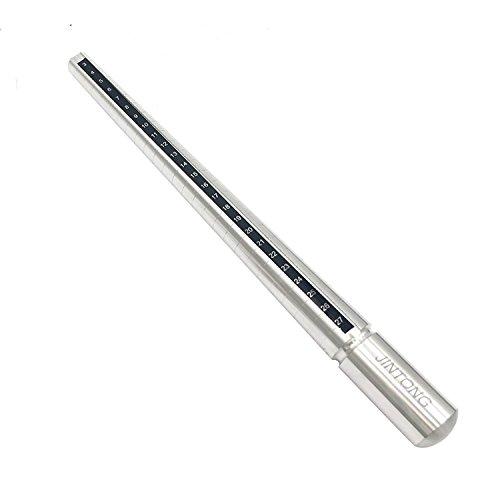 日本で一番使用されている指輪ゲージ棒アルミ製#3~#27まで測定可能番手位置に溝が入っています。この指輪サイズ棒は、全国標準規格に合わせて精度を保つために、検品後検品シールが貼られています。*** 全国標準規格の指輪ゲージ棒です。