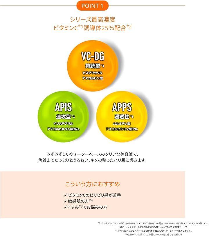 x1 x2 ビスグリセリルアスコルビン酸を25%配合、イソステアリルアスコルビルリン酸2Na、パルミチン酸アスコルビルリン酸3Na(すべて保湿成分) x3 本商品は医療機器ではありません。