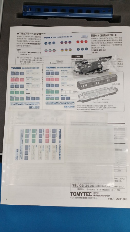 ■商品説明2011年ロット増結単品のオハネフ24、オハネ24、オシ24は社外品のブックケースに収納オシ24のみBMTNカプラー未対応基本セットの中間のオハネフ24、増結単品のオハネフ24はライト非点灯全車新集電台車