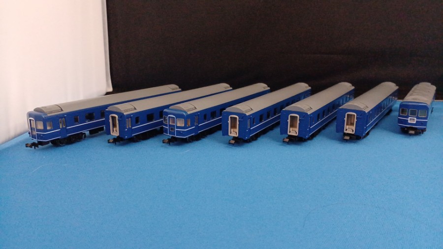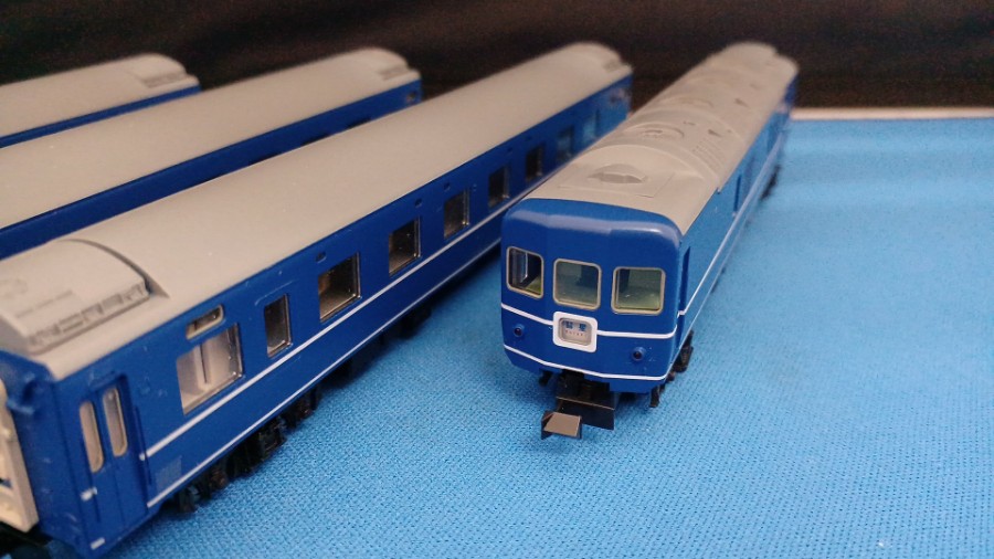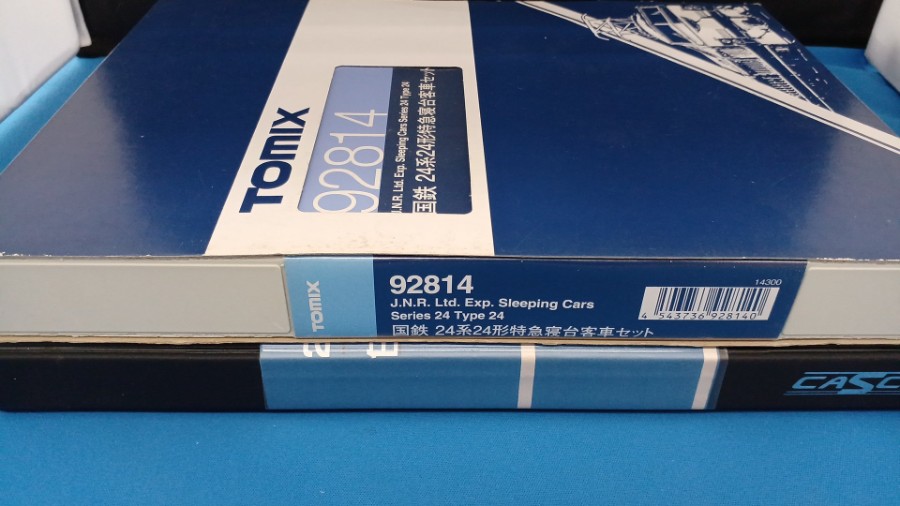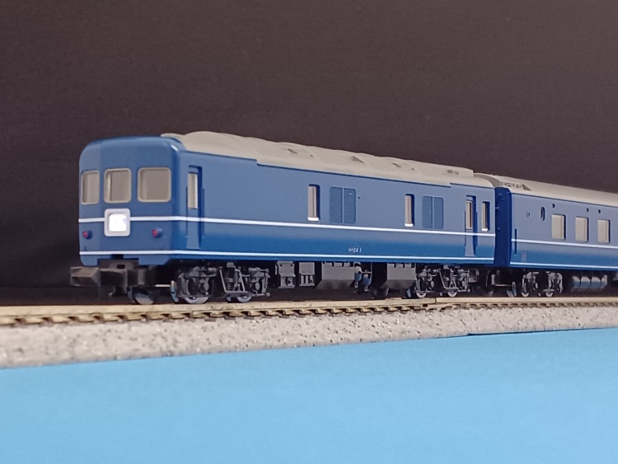 ■トミックスの24系24形は初代製品がオハネフ24のみ新規金型、オハネ24はオハネ14の金型流用、カニ24は白帯にしただけのなんちゃって仕様でしたが、この製品から先行してリニューアル発売されていた金帯あさがせのオハネ24700番台の金型を使用してオハネ240番台の再現が可能となり、カヤ24を新規金型で追加することで完全版が出せるようになりました。当時、カトーがブルトレ製品をリブート、14系さくらに続いて24系24形ゆうづるをカヤ24込みで製品化したことでかなりの危機感があったのか、トミックスも積極的に既存のブルトレ製品のリニューアルやマイナーチェンジ、新規金型の追加を行うようになりました。これまでの間、トミックスはブルトレの引退によるさよならセットを乱発してレギュラー品が長らく出せておらず、一般品が欲しいユーザーにとって冬の時代で中古品を探し回る状態でした。24系25形100番台リニューアルが始まった2010年頃から入手がしやすくなったように思います。ちなみに、トミックスの意図としては東北ブルトレのゆうづるやあけぼので使用されていた時代を再現していたようですが、前ユーザー様は24系24形の発祥線区である関西発着ブルトレを再現していたらしく、彗星のテールマークをはっています