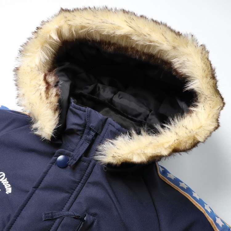 スノーコンビ・ジャンプスーツ・スキーウェアタイプのつなぎ!雪遊びやお外遊びにも!!足部分は二重構造になっているので、ナイロン部分を中に入れてスノーブーツを履いて、スノーブーツの上から被せると足元から雪が入りにくい!ポケットの中のひも、脇部分のひもを調節する事で、手足部分の長さ調節も可能です。お洋服の上から着ることを考えて作られており、大き目の作りなので、ジャストサイズをオススメします。通園、通学の際にもぴったり☆フードはボタンで取り外し可能です!表は耐水圧2000mmの防水加工です!(完全防水ではありません。撥水スプレーとの併用がオススメです。)【アイテム】 カジュアル お洒落 オシャレ かっこいい かわいい 可愛い 普段着 デイリーウェア お出かけ着 ロングスリーブ 長袖 アウター ブルゾン ジャンパー コート ジップアップ フロントジップ 子ども こども 男児 男の子 ボーイズ キッズ ベビーサイズ トドラーサイズ 幼稚園 保育園 小学校 通園 通学 小学生 2024年秋冬物新作 丸高衣料 切替 雪遊び スキー スノーボード ソリ遊び ジョリージュリー ピンク ネイビー 紺色 ロゴ スター ハート