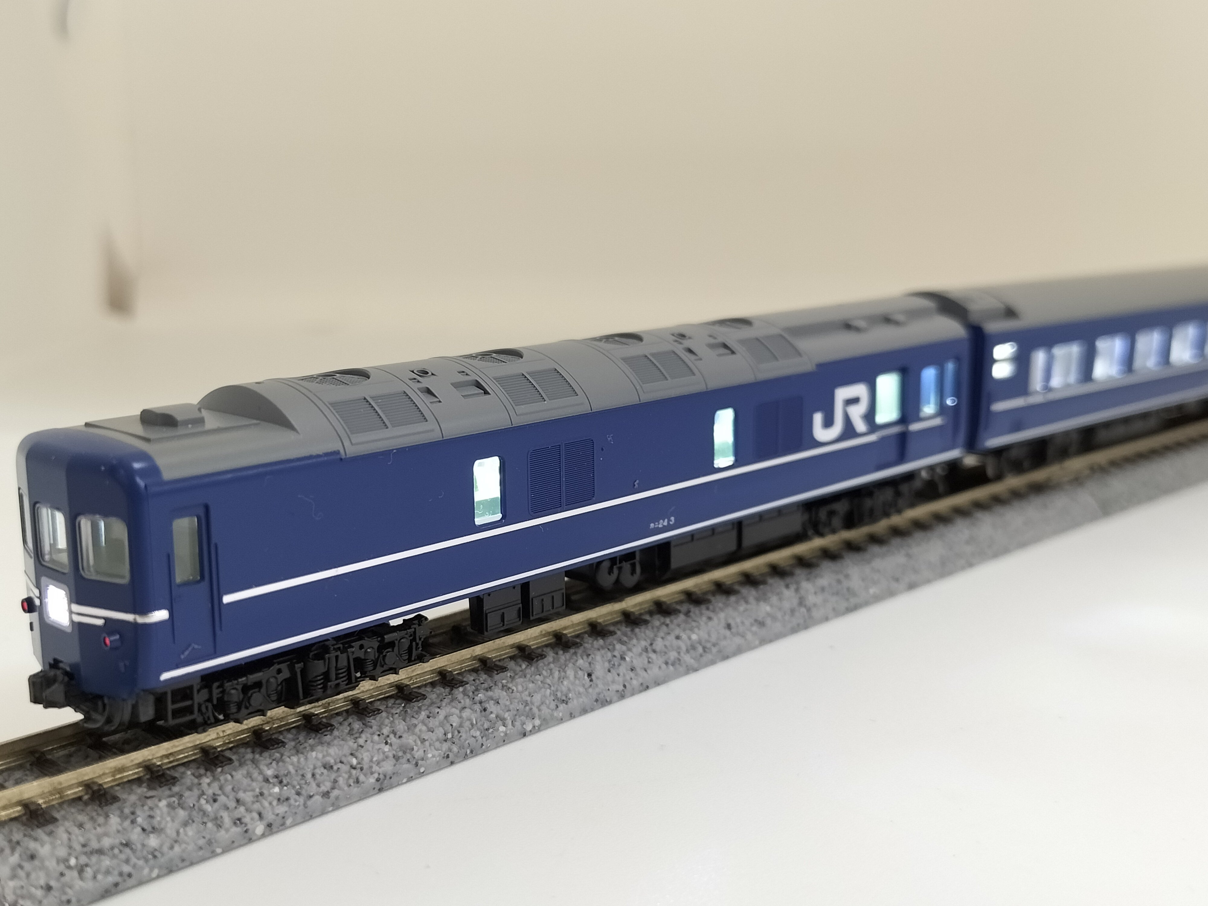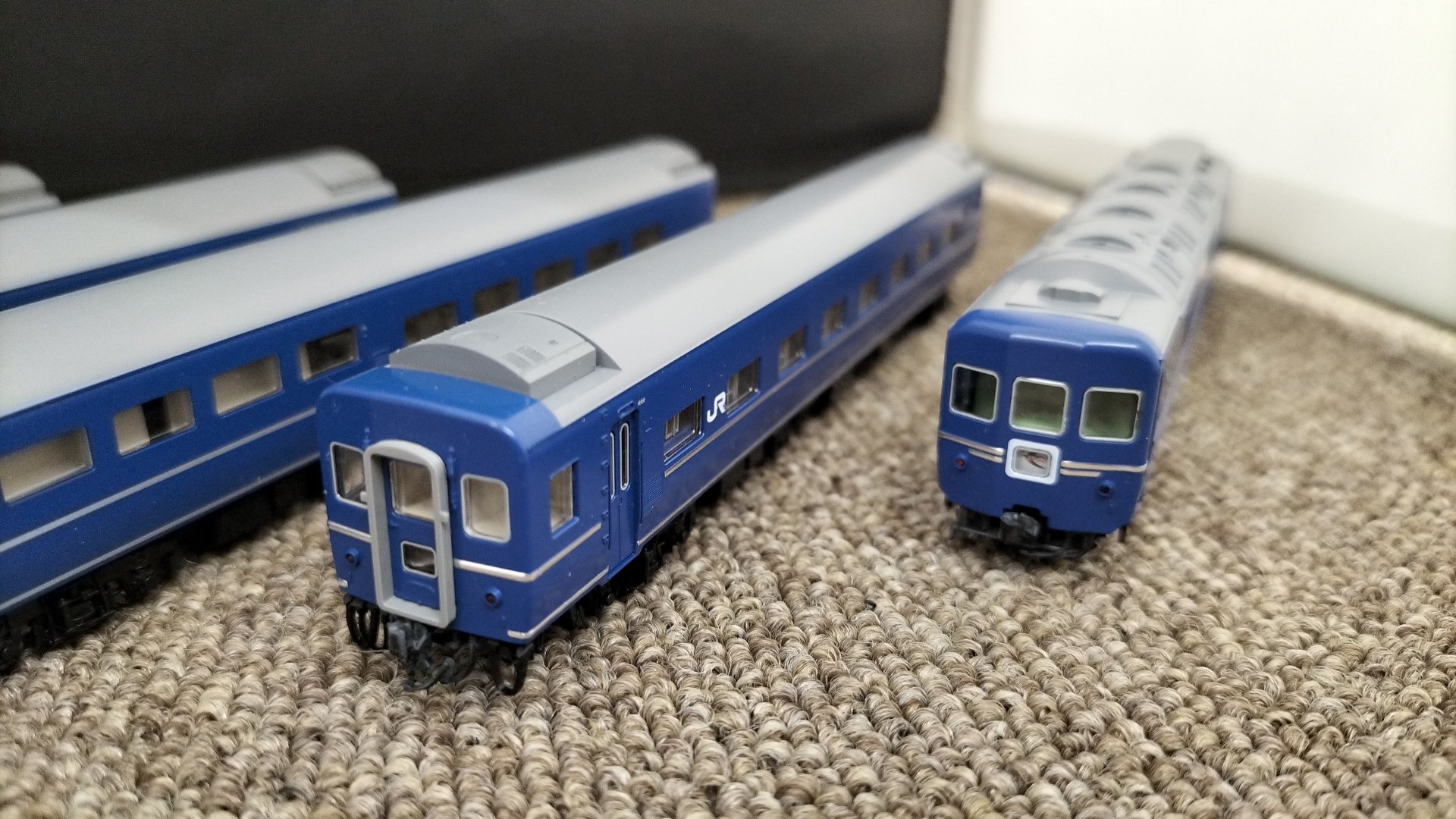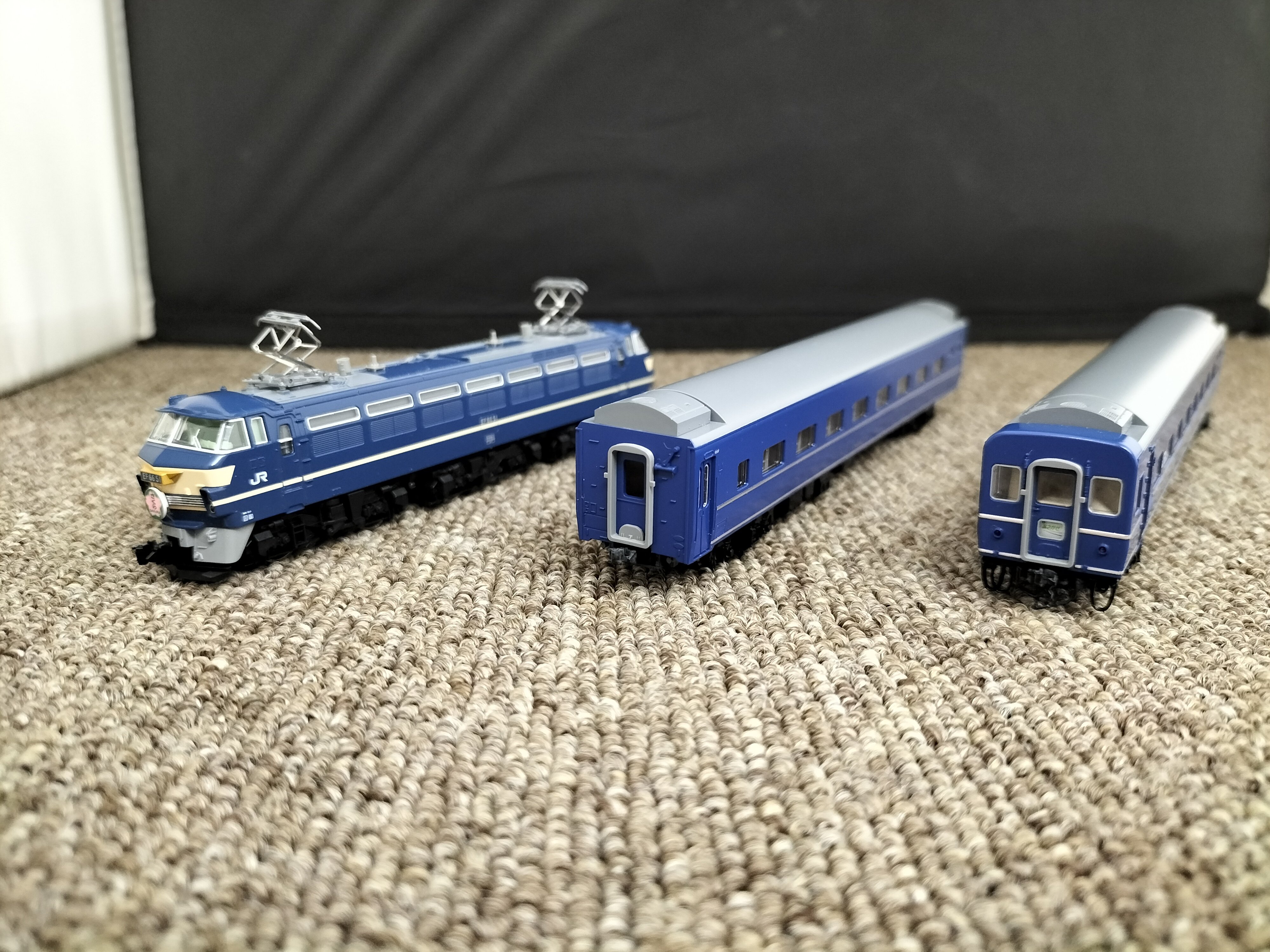 JR EF66形ブルートレインセット、国鉄24系25100形特急寝台客車(はやぶさ)セットの計10両セット。実車に即した編成とする場合、98803国鉄24系25-100形特急寝台客車増結セットを買い足す必要がありますEF66ブルートレインセットは2022年ロット、はやぶさセットは2023年ロットEF66ブルートレイン付属のオハネフ25、オハネ25には室内ハシゴパーツがない一つ前のロットになります