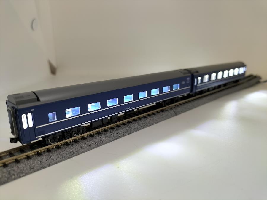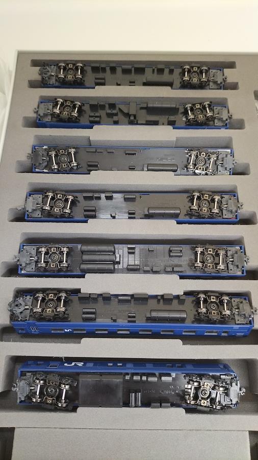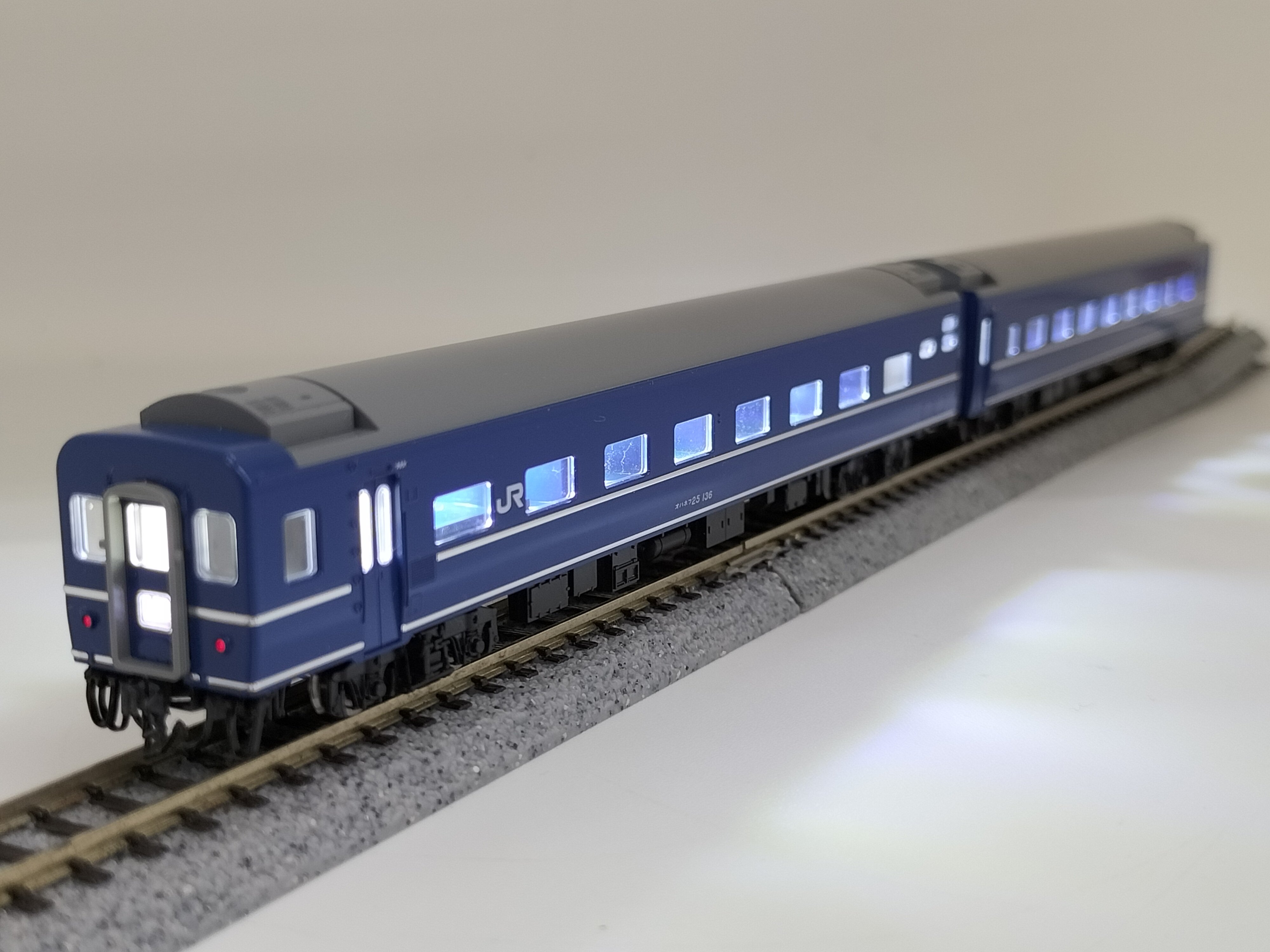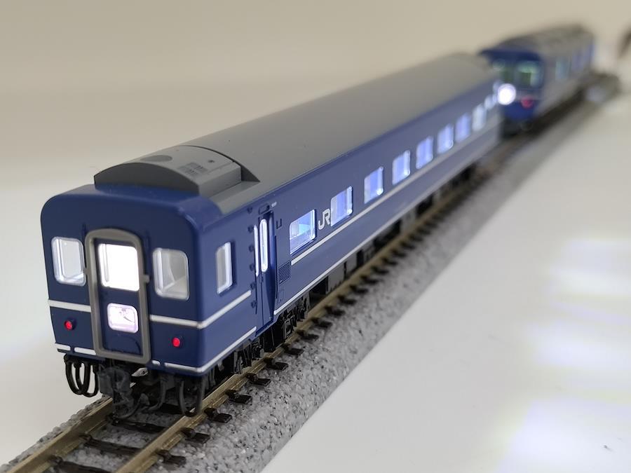 JR EF66形ブルートレインセット、国鉄24系25100形特急寝台客車(はやぶさ)セットの計10両セット。実車に即した編成とする場合、98803国鉄24系25-100形特急寝台客車増結セットを買い足す必要がありますEF66ブルートレインセットは2022年ロット、はやぶさセットは2023年ロットEF66ブルートレイン付属のオハネフ25、オハネ25には室内ハシゴパーツがない一つ前のロットになります