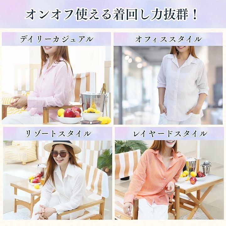[5つの魅力ポイント] 1. エアリーな透け感:シアー素材で抜け感を演出 2. 上品なストライプ柄:細やかなストライプが縦のラインを強調し、すっきりとした印象に 3. こだわりのディテール:ラウンドヘムとオープンカラーで女性らしさを演出 4. 快適な着心地:ポリエステルxコットン混紡素材で軽やかな着用感 5. 豊富なカラバリ:様々なコーデに合わせられる5色展開