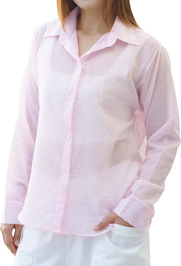 [UV対策も叶える、大人のシアーシャツ] 薄手シフォン素材を使用したストライプシャツ。