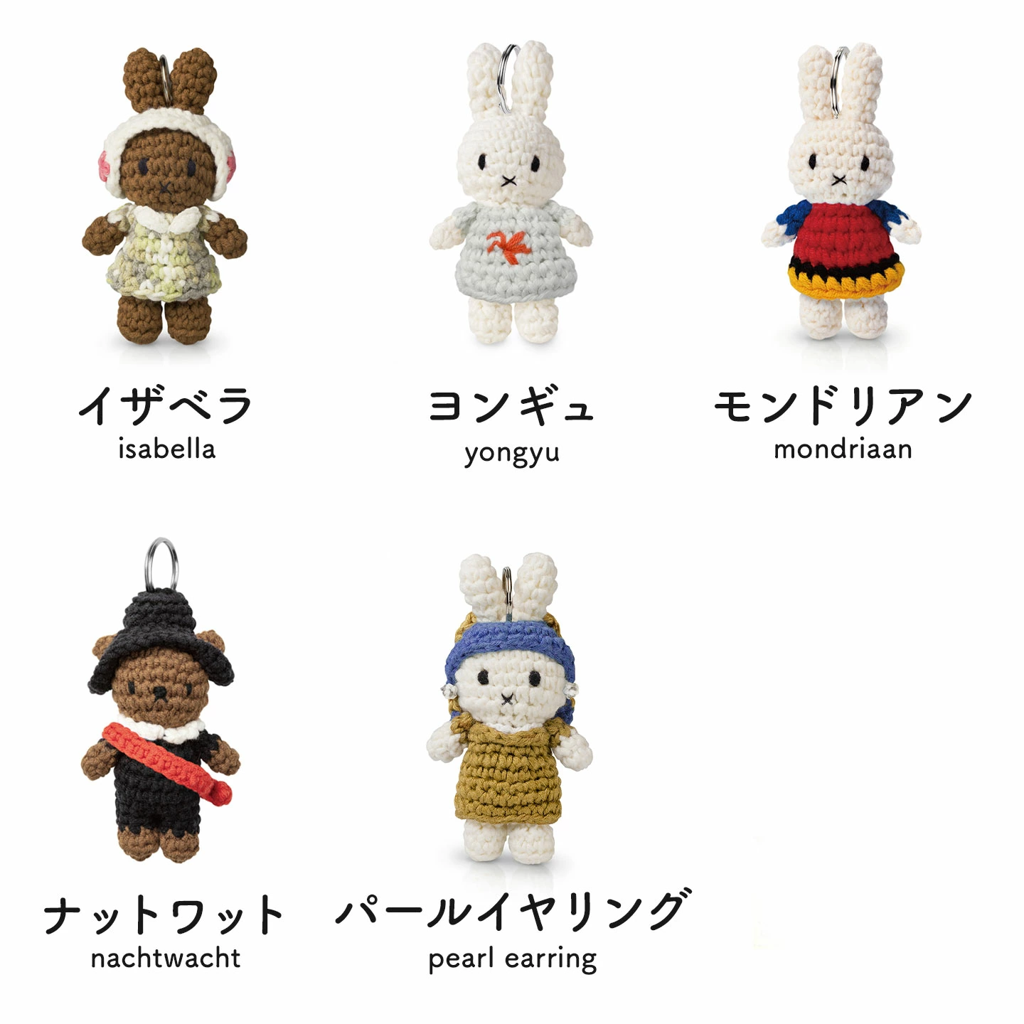 【ミュージアムアウトフィット ハンドメイド キーハンガー】ミッフィーの編みぐるみ「just dutch(ジャストダッチ)」シリーズにキーリングが登場しました。名画とコラボしたミュージアムシリーズです。手のひらサイズの編みぐるみがそのままバッグや鍵のアクセントに。ひとつひとつ丁寧に編まれた温もりのあるデザインで、日常にほっとする彩りを添えます。ギフトやプレゼントにもオススメ◎