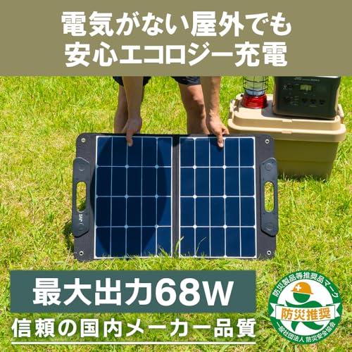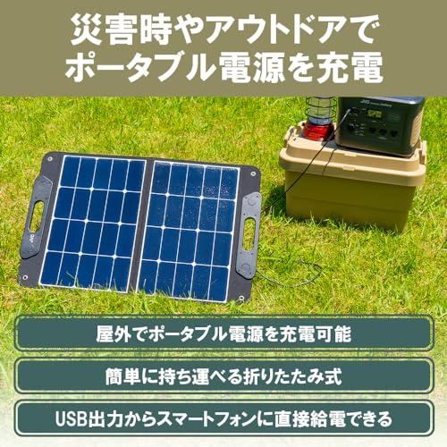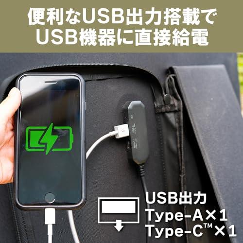 高効率ソーラーパネル搭載、簡単に持ち運べる折りたたみ式、USB出力からスマートフォンに直接給電可能