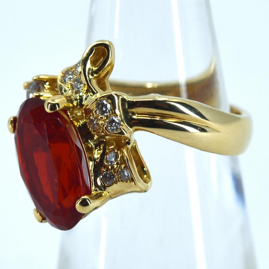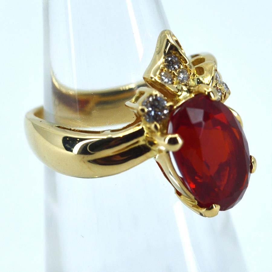 【アイテム名】K18 赤色石付きダイヤモンドリング