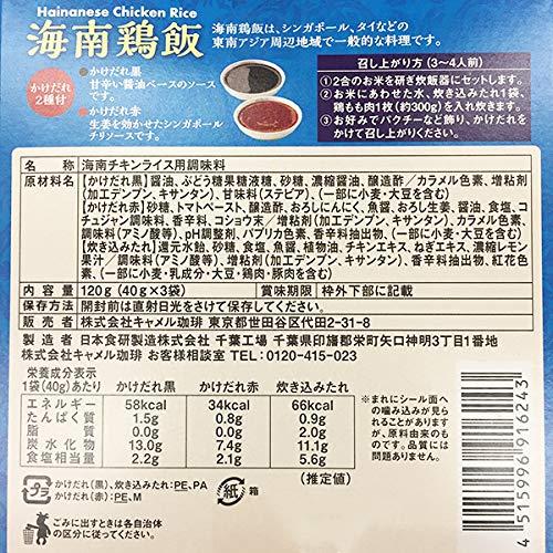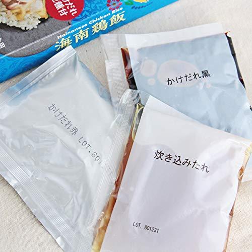 海南鶏飯は、シンガポール、タイなどの東南アジア周辺地域で一般的な料理です。炊き込み用のたれと、かけたれ2種が入っています。かけたれの黒は甘じょっぱい醤油ベースのソースで、かけたれの赤は生姜と唐辛子のシンガポールチリソースです。