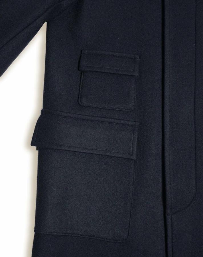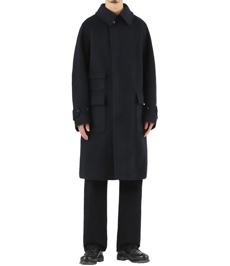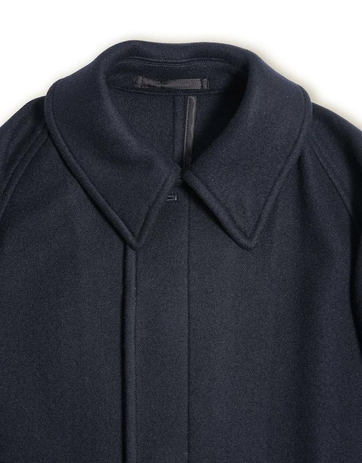 極細ウール繊維、16.5マイクロンのSuper140’sを使用して高密度に織り上げたリバース・ダブルクロスメルトンです。 適度なハリコシがあり軽量で充分な柔らかさと艶感が特徴の二重織メルトンです。 ブランド定番のコートです。