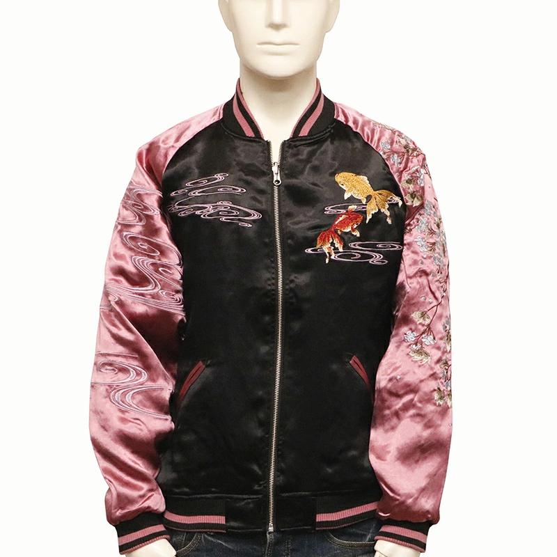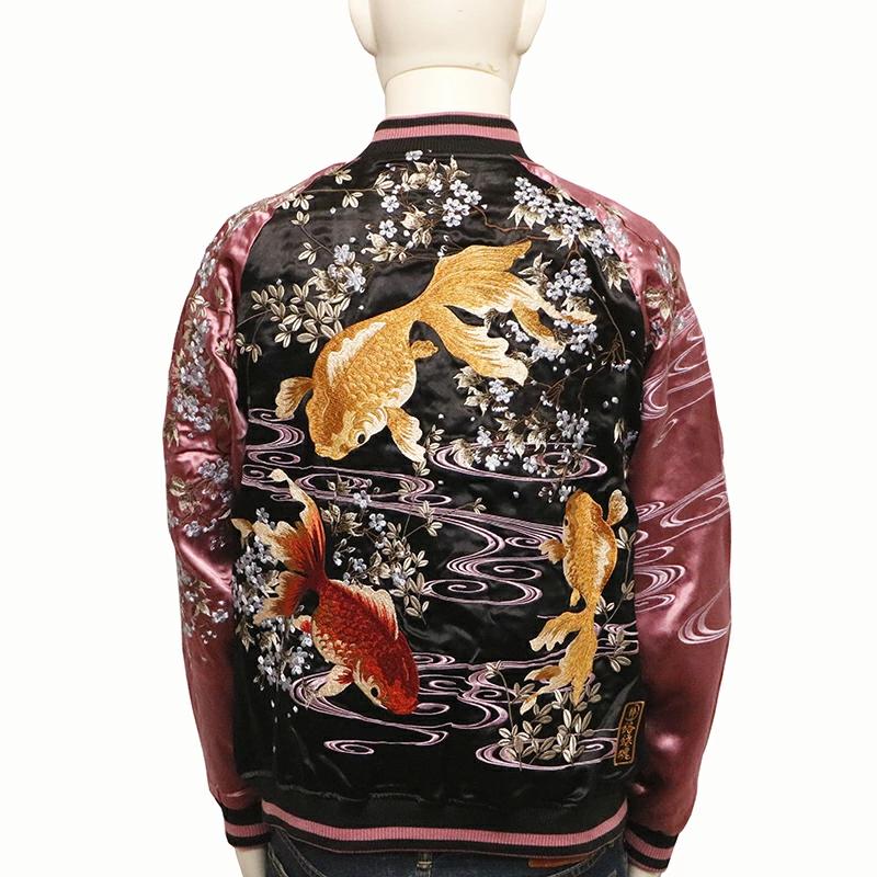 金魚 柄 刺繍 和柄 リバ−シブル スカジャン