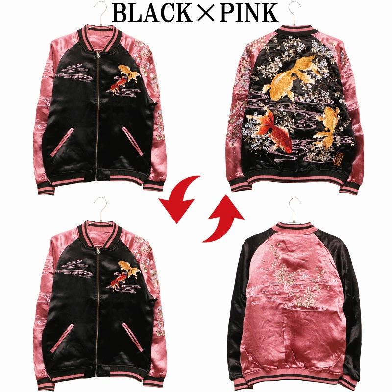金魚 柄 刺繍 和柄 リバ−シブル スカジャンです。