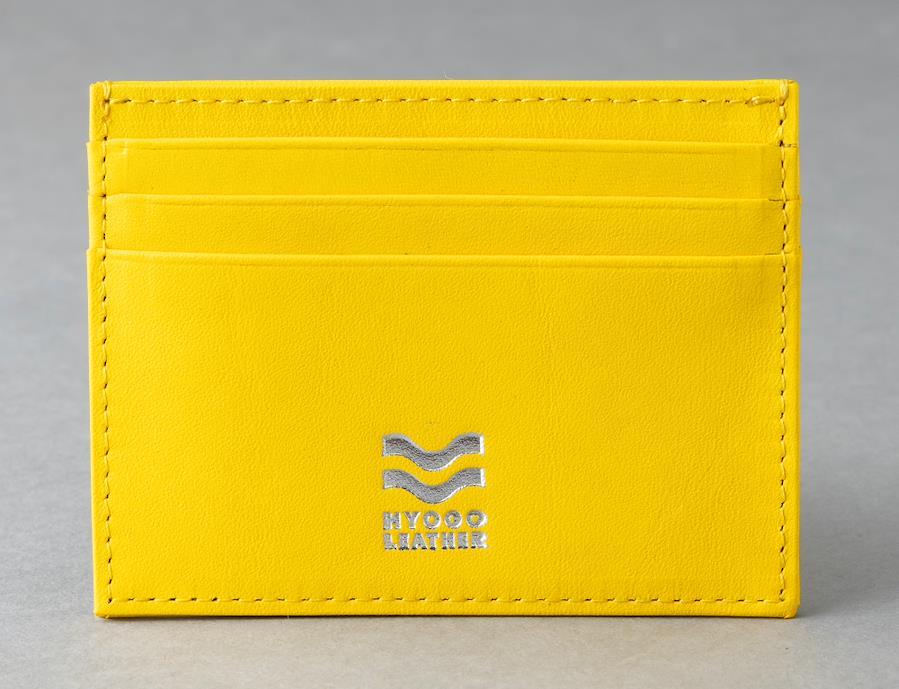 【KAWAORI】黄色のカードケースです。中に兵庫県の地場産業である播州織が使用されています。受注生産品ですのでご注文から発送まで、2ヶ月ほどお時間をいただきます。