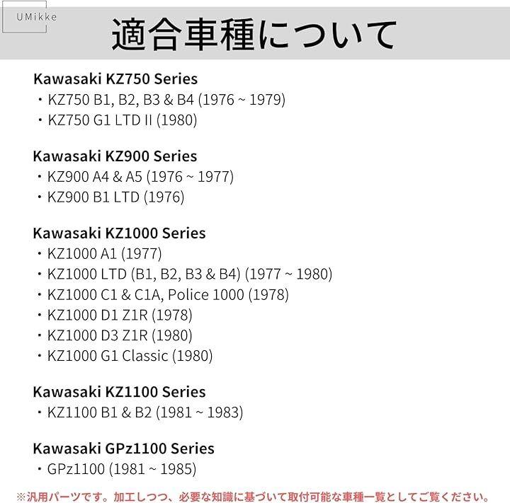 適合車種:KZ750シリーズ、KZ900シリーズ、KZ1000シリーズ、KZ1100シリーズ、GPz1100シリーズ。