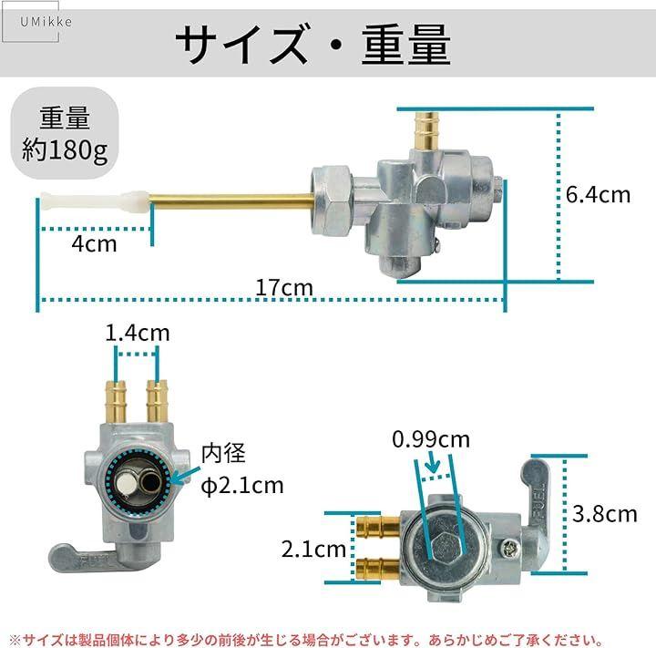 カワサキ(KAWASAKI)互換(社外品)、取付ねじ22mm規格対応(実寸約21mm)、汎用のバイク用フューエルコック(燃料コック)です。