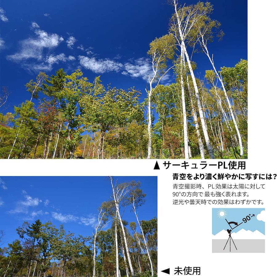 3営業日以内に発送≪新品未開封品≫:Kenko サーキュラーPL(W)フィルターは、偏光膜を使用し、光の表面反射や乱反射を調整することで、青空や樹葉、建物などのコントラスト強調の効果やガラスや水面などの反射を除去したり強調したりすることができる、効果系フィルターの定番アイテムです。 特に風景撮影において、多くの場面で活躍する、風景撮影の必需品ともいえるフィルターです。春には桜の撮影をする際、花びらが白っぽくなってしまいますが、サーキュラーPL(W)フィルターを上手く使うことで花びらに当たる反射を抑え、本来の薄ピンク色を撮影できます。また秋には紅葉を撮影する際の青空のコントラストを高め、抜けるような撮影が可能になります。 従来のサーキュラーPLは、通常の枠厚のため、焦点距離35mm以下のレンズには使用できませんでしたが、サーキュラーPL(W)では新しく薄枠を採用したため、広角レンズでも使用できるようになりました。