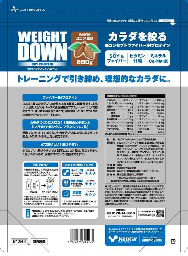 Kentai WEIGHT DOWN SOYプロテイン ココア風味 880g