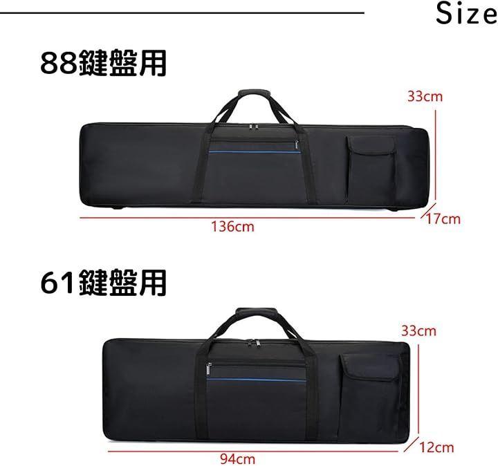 「商品内容」88鍵盤用サイズ:136cm x 17cm x 33cm/ポケットサイズ:18cm x 29cm 61鍵盤用サイズ:94cm x 12cm x 33cm//ポケットサイズ:18cm x 28cm 素材:オックスフォード生地(表地)シルク裏地(裏地)