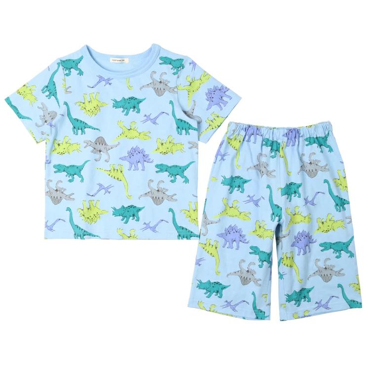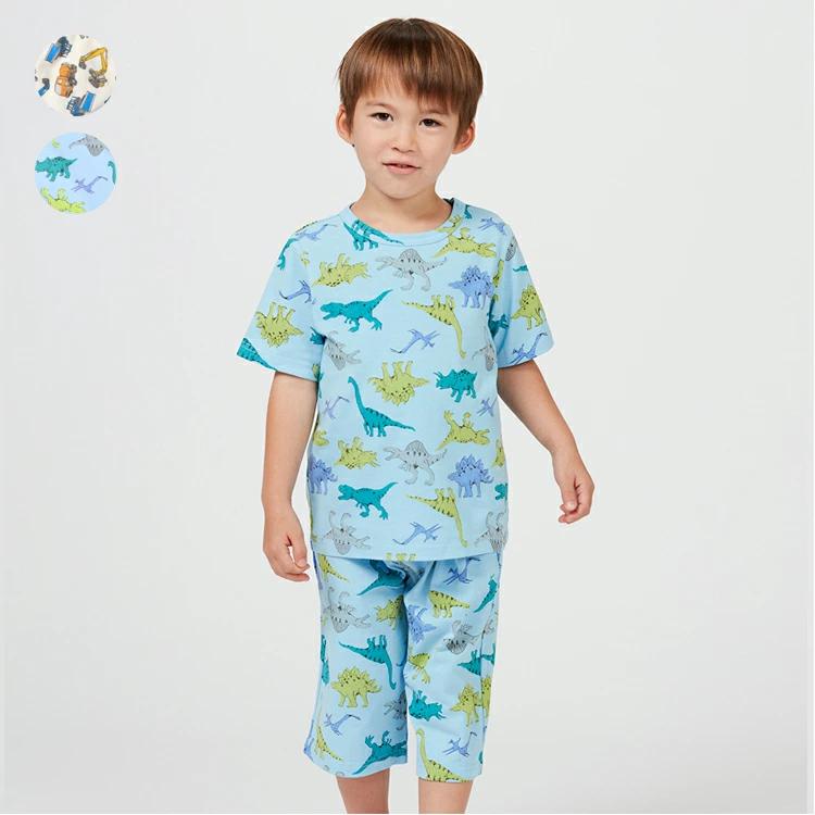 Tシャツ素材の半袖Tシャツとハーフパンツのパジャマ。本体は綿100%なので、肌あたりが良くしっかり汗を吸います。Tシャツの脇のボタンをパンツの脇のボタンホールに入れて着れば、お腹が出にくい仕様です。男の子が大好きな働く車柄と恐竜柄の2柄展開。【アイテム】トップス ボトムス カジュアル お洒落 オシャレ かっこいい かわいい 可愛い 普段着 デイリーウェア 半袖 トップス ハーフパンツ 短パン 半パン 半ズボン ボトムス 寝巻 ルームウェア 子ども こども 男児 男の子 ボーイズ キッズ ベビーサイズ トドラーサイズ 幼稚園 保育園 小学校 小学生 2025年春夏物新作 丸高衣料 贈り物 ギフト プレゼント 帰省 お泊り会 旅行 チェック ダイナソー ショベルカー トラック ブルドーザー 建機 工事車両 ブルー 青色 ホワイト 白色 キッズフォーレ