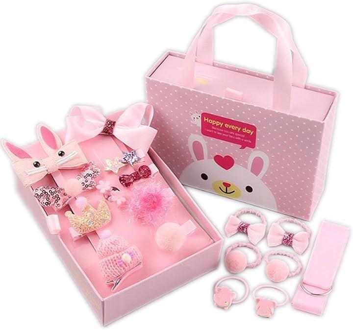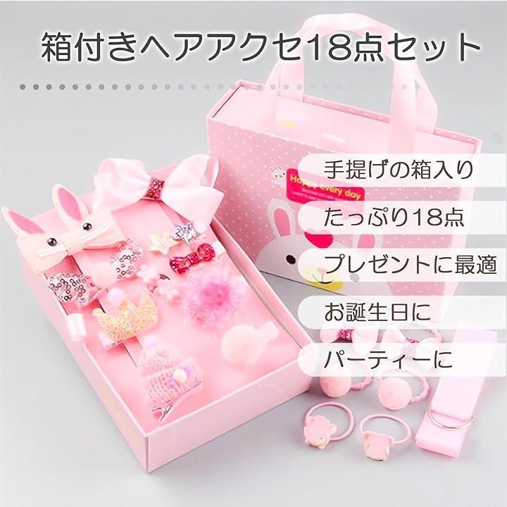 「箱入りヘアアクセサリー18点セット」しっかりした手提げの箱入りヘアアクセサリーの18点セット。
