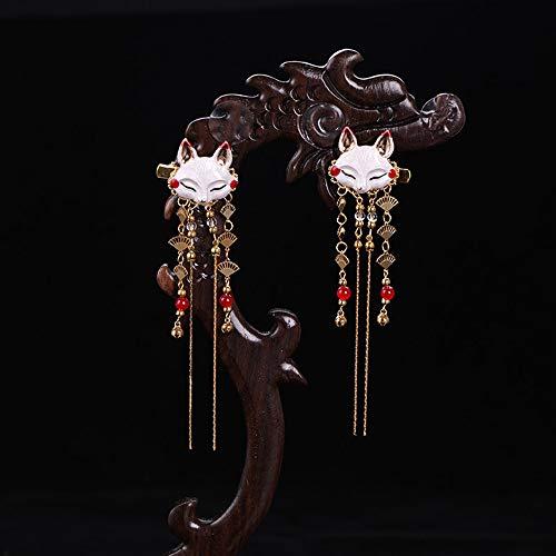 狐をモチーフにした髪飾りです。チェーンタッセル、扇、ビーズがアクセントとしてついています。