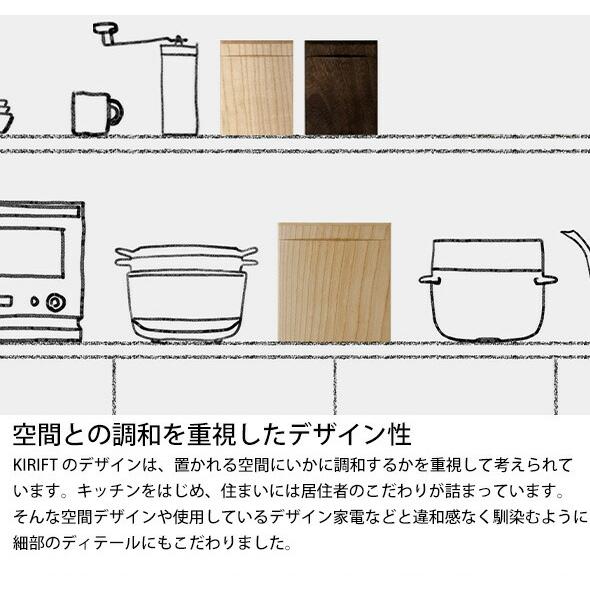 天然木ならではの温かみと、焼桐の落ち着いた色合いが特徴。和風・ナチュラルテイストのキッチンにもよく馴染み、インテリアとしても違和感なく置けるデザインです。